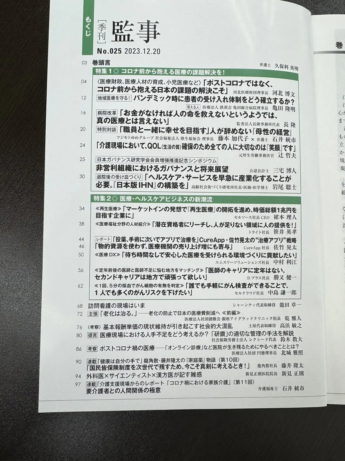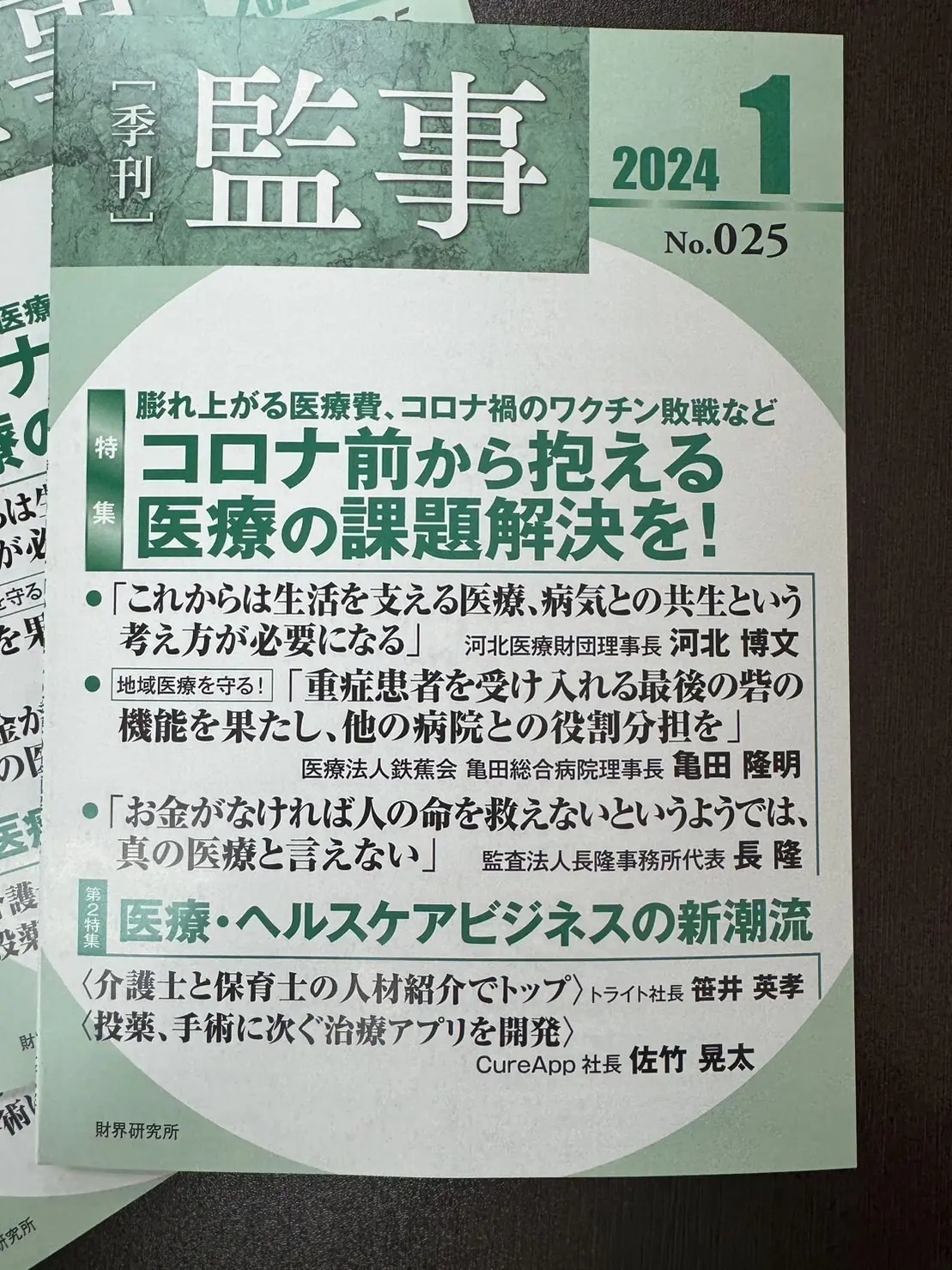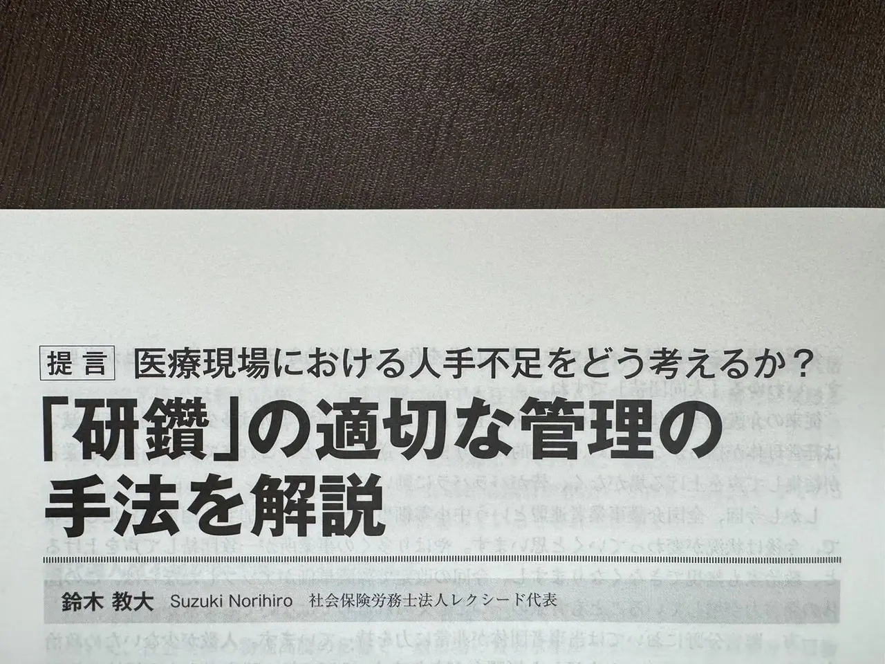 [季刊]監事において、6ページに渡り弊社代表 鈴木教大が、医療現場における研鑽の適切な労務管理手法を解説。